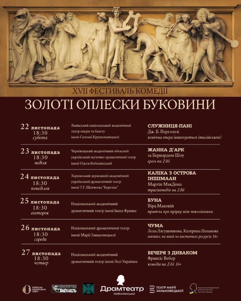 XVII Фестиваль комедії “Золоті оплески Буковини” відбудеться з 22 по 27 листопада у Чернівцях.