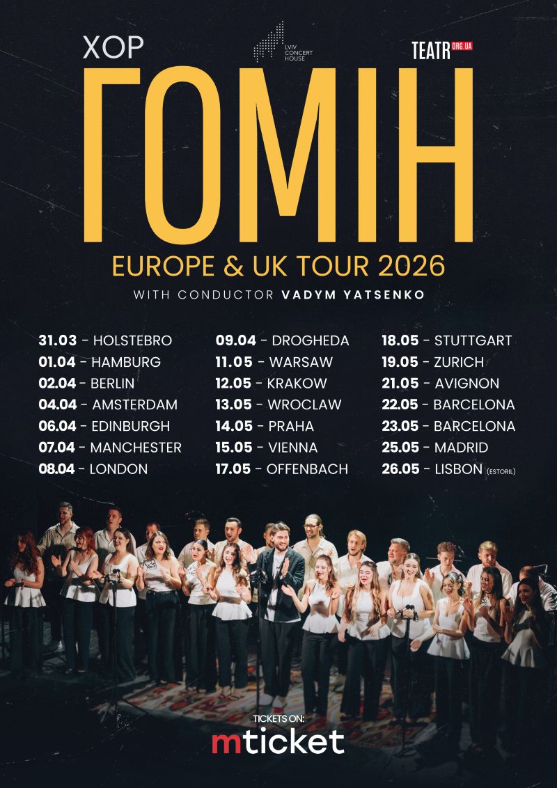 31 березня хор “Гомін” Львівського органного залу, що завоював любов слухачів в Україні та далеко за її межами, розпочинає новий тур Європою.