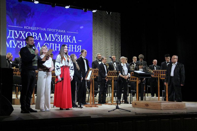 Програма “Духова музика — музика єднання” зв’язала в єдину барвисту музичну палітру твори українських, західноєвропейських, американських авторів — Олександра Морозова, Олени Лукашової, Геральда Колача, Ганса Шульце, Ірвінга Берліна, Володимира Гуменчука... Глядачі тепло зустріли виступи солістів оркестру Сергія Сетуна, Андрія Токаря, Артема Джевагірова. І, як завжди, в концерті духового оркестру Чернігівського філармонійного центру лунали українські пісні. Їх виконали у супроводі оркестру Марина Коваленко і Яна Сидоренко. Провели концерт Яна та Сергій Сидоренки.