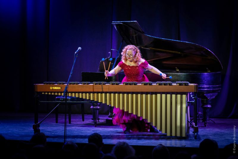 Нині в її виконанні прозвучав твір японської композиторки Кейко Абе «Тамбурін Парафраз» – справжнє театралізоване видовище. Перед нами була немов чаклунка з набором чарівних паличок! І специфічний тембр маримби, і майже циркові чарівні рухи музикантки, і її артистизм – публіка була завойована з перших же звуків.
