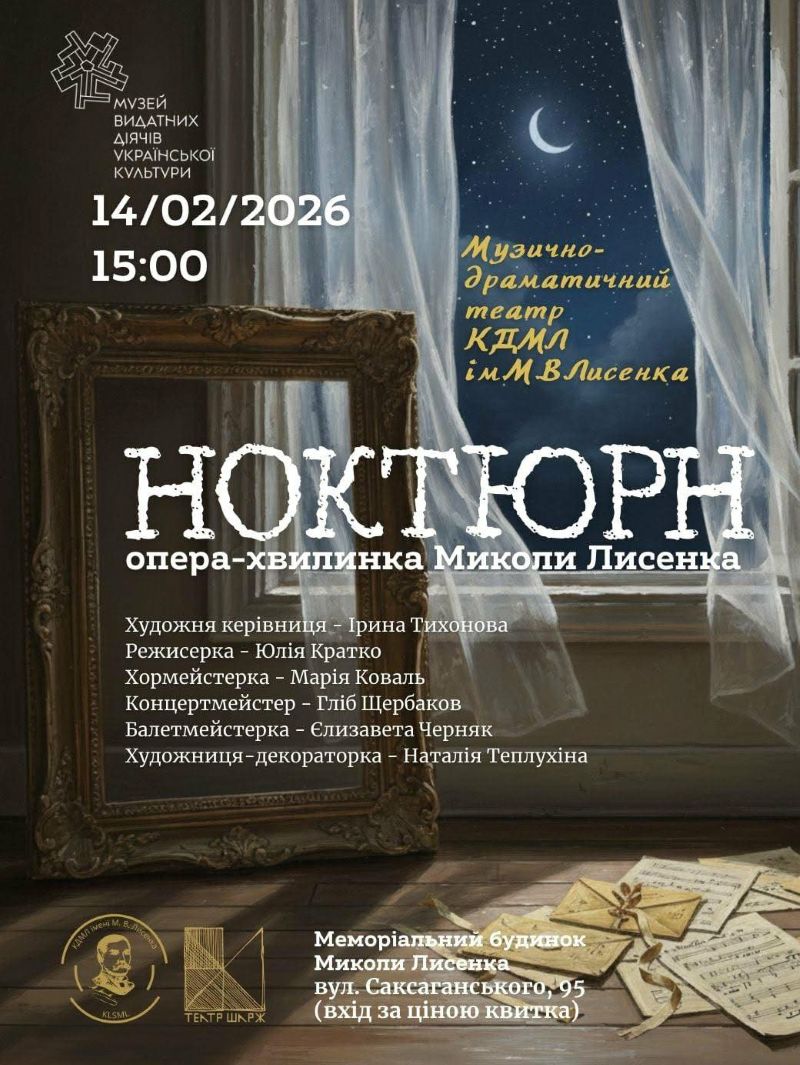 Постановка опери-хвилинки М. Лисенка «Ноктюрн» у виконанні студентів КДМЛ ім. М. Лисенка репрезентує нове творче прочитання унікального твору у новому часовому вимірі.
