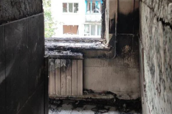 На фото з імовірно квартири юристки видно, що приміщення повністю згоріло, стіни між кімнатами на межі руйнування, а від ремонту лишилося лише декілька розбитих плиток на стіні.