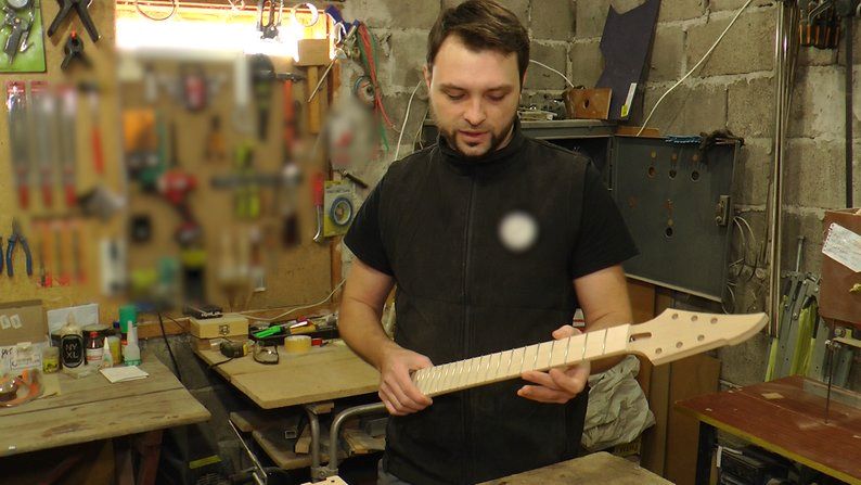 Під час виробництва електрогітар, каже майстер, свої труднощі: "Технічно найскладніше зробити розмітку під лади та пази для них. Якщо не витримана дистанція між ладами, ти будеш брати ноту, а вона на якийсь процент відхиляється, і це буде чутно".